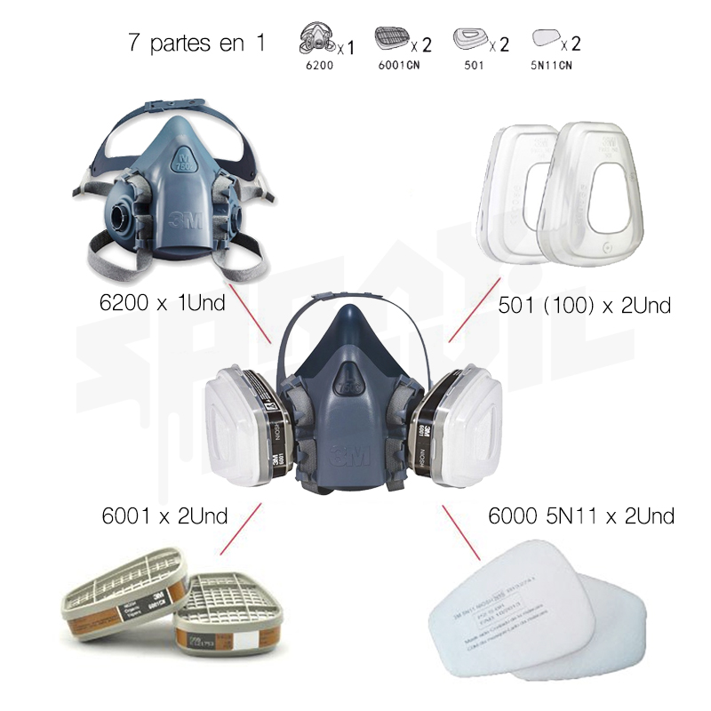 Respiradores de Media Pieza Facial Serie 7500 utilizan material de silicona avanzadas para ayudar a proporcionar una protección respiratoria cómoda y durable. válvula patentada 3M™CoolFlow™ ayuda a hacer más fácil la respiración, reduce el calor y la acumulación de humedad para comodidad fresca y seca. Con Cartuchos químico para vapores orgánicos.