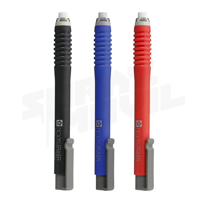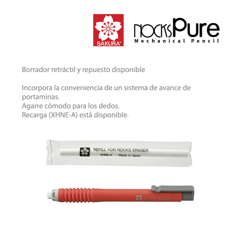Borrador retráctil. Incorpora la comodidad de un sistema de avance de lápiz mecánico. Cómodo agarre con los dedos. Repuesto está disponible.