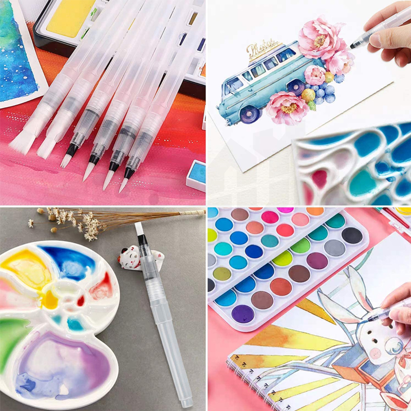 Fácil de usar y de control: los bolígrafos de acuarela simplemente desenroscan el barril de los bolígrafos de acuarela para añadir agua o tinta. Simplemente aprieta el barril para controlar fácilmente la tinta o el flujo de agua. (Nota: Por favor, haga que el agua sea inferior a 2/3 del volumen del bolígrafo cuando llene el agua en el bolígrafo).