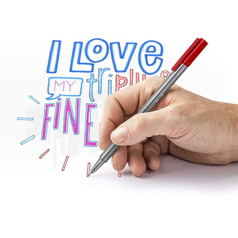 • Punta redonda revestida de metal superfina, de aproximadamente 0,3 mm de ancho. Diseño triangular ergonómico para una escritura fácil y relajada.