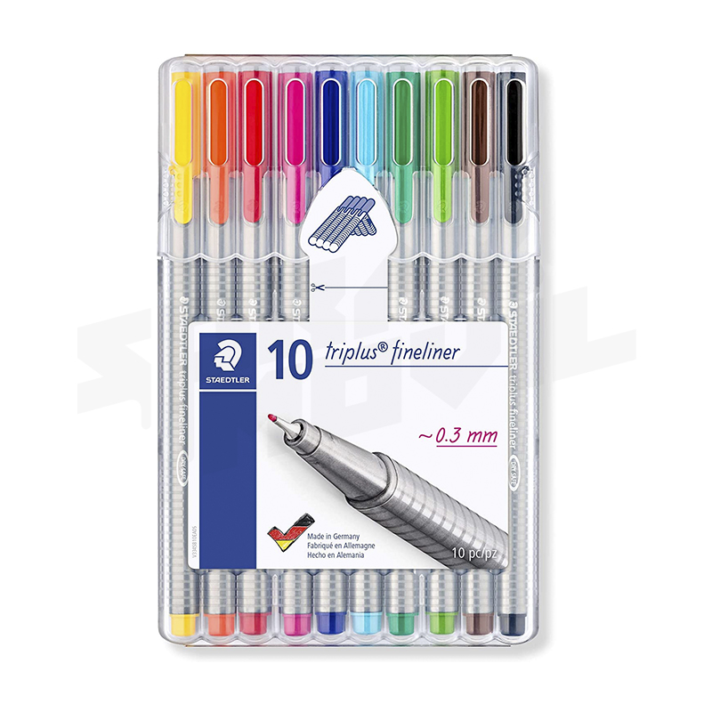 Staedtler 334 SB6CS9. Rotuladores de colores brillantes de punta fina Triplus Fineliner. Punta revestida de metal, ergonómico, lavable - Pack de 10 marcadores.