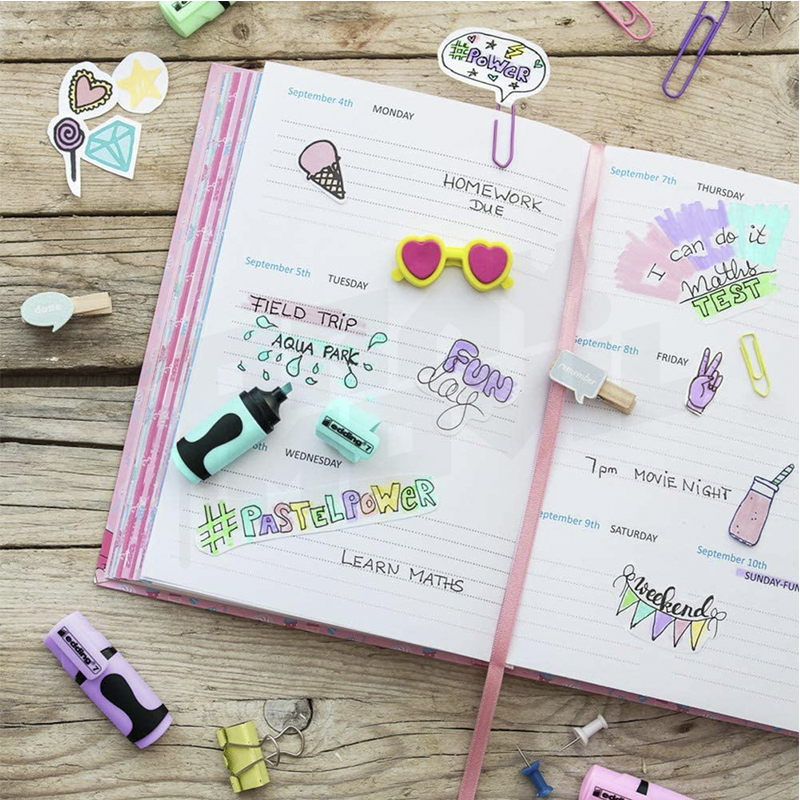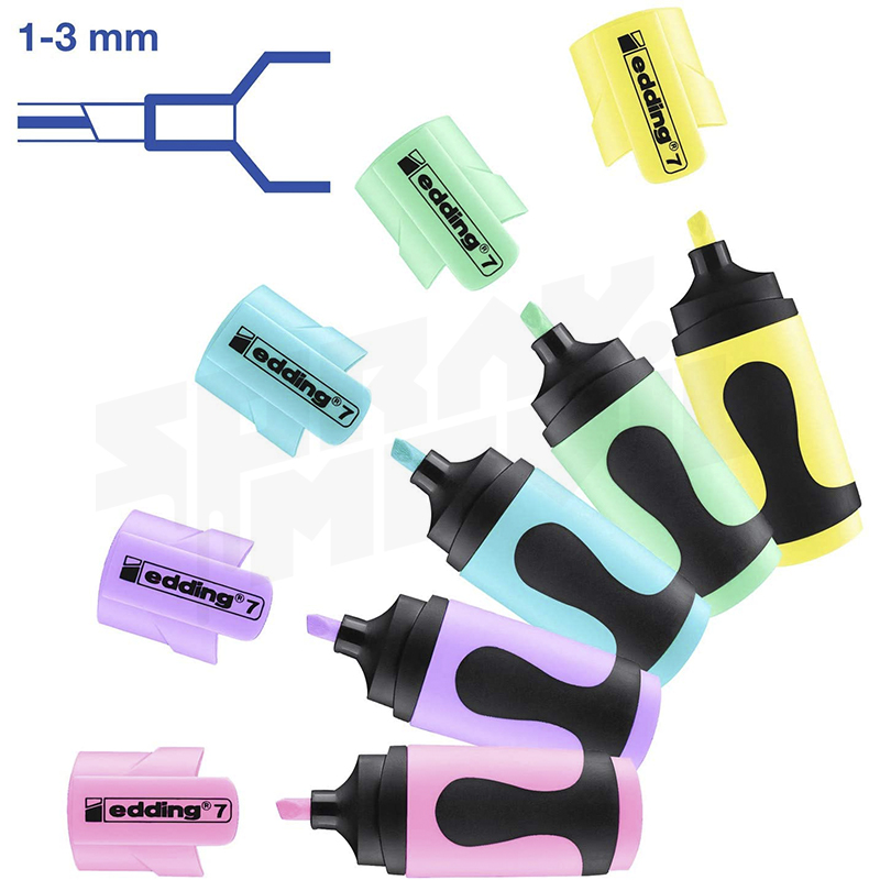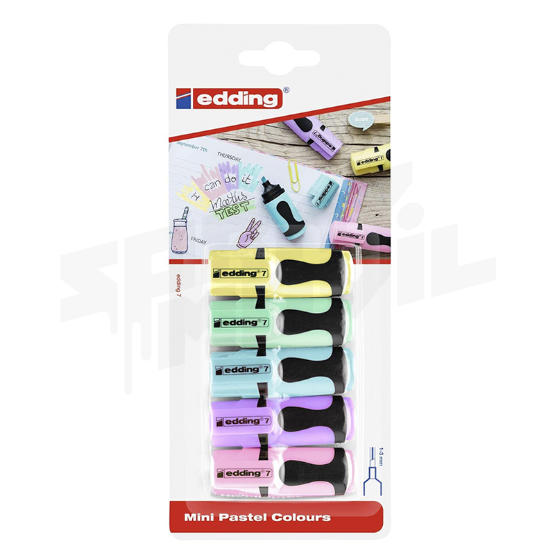 Edding 7 Mini subrayadores 5 colores pastel (amarillo, verde, azul, morado, rosa), trazo 1-3 mm, blíster 5 unidades