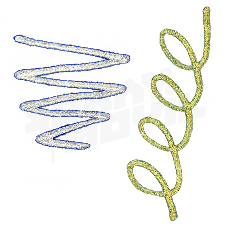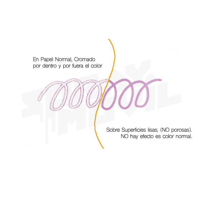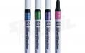 Marcador de efectos delineados Tinta permanente a base de alcohol. En superficie porosa (papel, madera): Línea metálica con contorno de color. En no poroso (Papel estucado, Plásticos): coloreado metálico. Ancho de línea: 1.0 mm. 4 colores combinados.