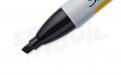 Marcador Sharpie negro tinta profesional cuenta con una punta de cincel durable que es extra fuerte para trabajos industriales. La tinta resistente al agua marca sobre superficies aceitosas o mojadas. El diseño de la pluma plana protege contra balanceo. Un agarre de goma en el barril le ayuda a aferrarse en ambientes ásperos.
